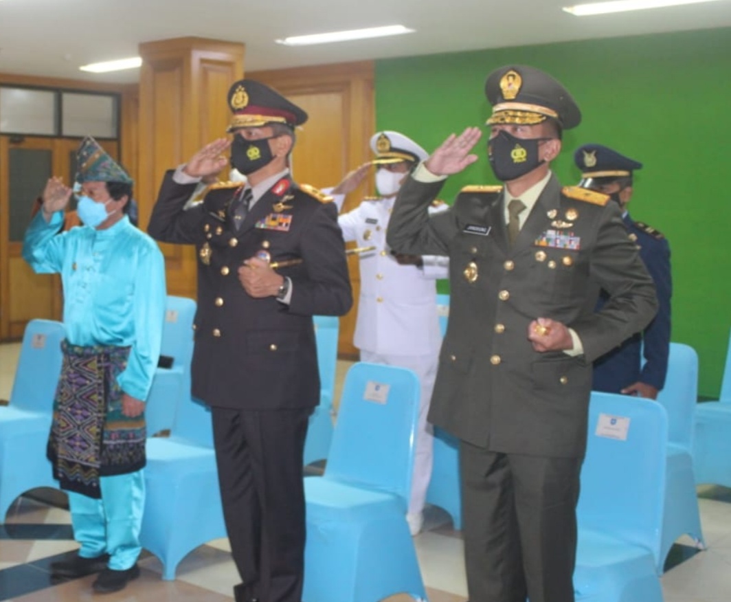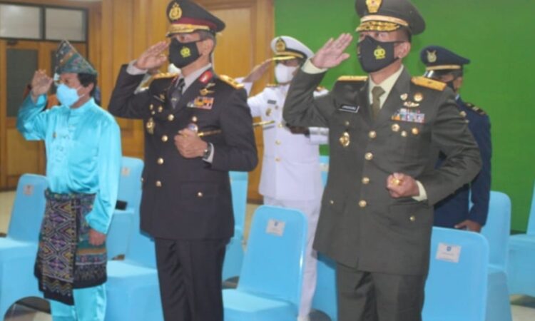 Pangkalpinang – Penrem 045/Gaya. Danrem 045/Garuda Jaya Brigjen TNI M Jangkung Widyanto, S.I.P., M.Tr.(Han) Upacara Memperingati Hari Lahir Pancasila. Selasa 01/06/2021 bertempat di Ruang Tanjung Pesona Kantor Gubernur Prov. Kep. Babel, Kel. Air Itam, Kec. Bukit Intan, Kota Pangkalpinang dilaksnakan Upacara Peringatan Hari Lahir Pancasila secara Virtual melalui Video Conference dengan tema “Pancasila Dalam Tindakan Bersatu Untuk Indonesia Tangguh”. Peringatan Hari lahir Pancasila dilaksanakan di Istana Negara sebagai Irup Presiden Republik Indonesia Bpk. Ir.Joko Widodo dan Komandan Upacara Kol Inf M. Imam Gogor.