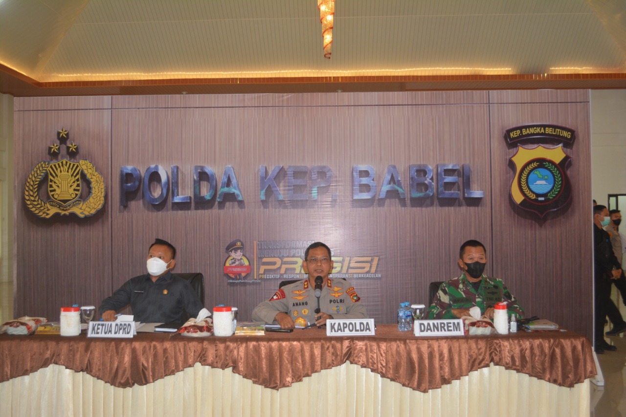 Rapat koordinasi ini juga di ikuti oleh seluruh jajaran Forkopimda Kabupaten/Kota di wilayah Provinsi Kepulauan Bangka Belitung melalui virtual.