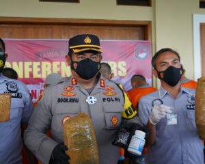 Konferensi Pers yang dipimpin, Kapolres Cianjur AKBP Mochamad Rifai, didampingi Kasat Narkoba Polres Cianjur AKP Ali Jupri, Paur Subbag Humas Polres Cianjur IPTU A. Nanda Rihardja, dan Anggota Satresnarkoba Polres Cianjur.