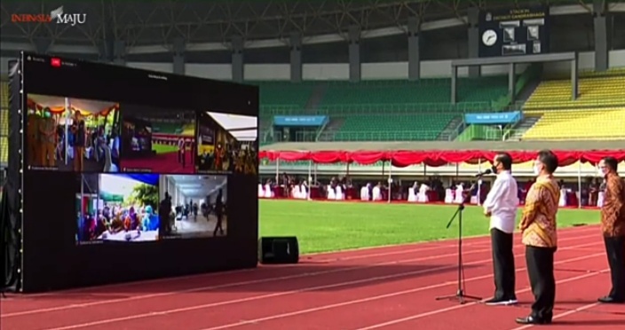 Selain itu,Presiden Joko Widodo juga melaksankan teleconference dengan beberapa wilayah di Kota Bekasi yang sedang melaksanakan vaksinasi covid-19.