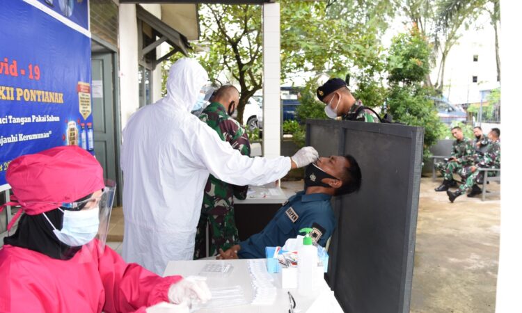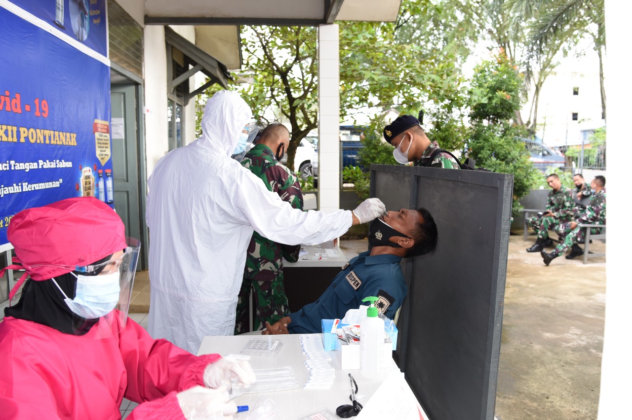 Swab Rapid Test Antigen dipimpin langsung oleh Kadiskes Lantamal XII, Letkol Laut (K) drg. Heru Subagyo bersama seluruh personel Dinas Kesehatan Lantamal XII dengan dilengkapi Alat Pelindung Diri (APD).