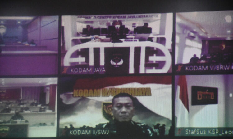 Palembang – Guna memastikan Program Percepatan Penanganan Covid-19 terlaksana di daerah, digelar Rapat Koordinasi Percepatan Penanganan Covid-19 yang dipimpin langsung Kepala Staf Kepresidenan RI Jenderal (Purn) Moeldoko, melalui Video Conference (Vicon) bersama sejumlah Pangdam di seluruh Indonesia.