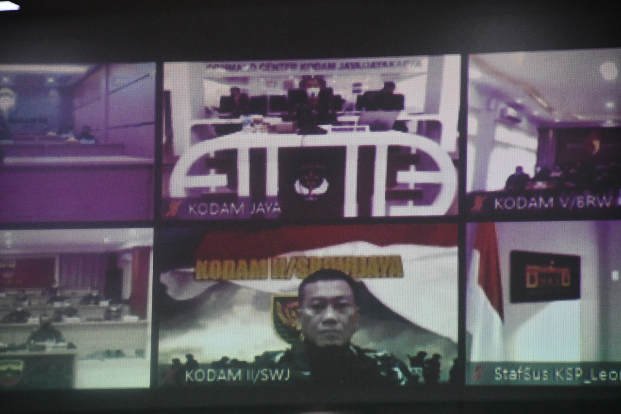 Dalam kesempatan tersebut, Pangdam II/Swj Mayjen TNI Agus Suhardi turut mengikuti Video Conferance dari Ruang Kerja Perwakilan Kodam II/Swj yang berada di Jakarta, Kamis (17/6/2021).