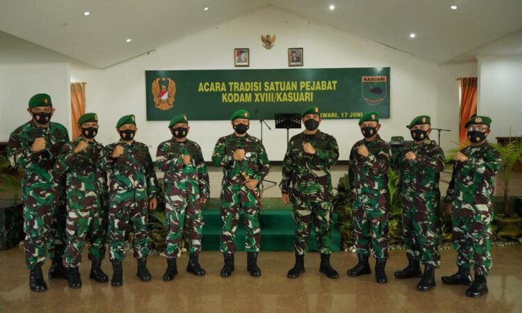 Hal ini dikatakan Pangdam XVIII/Kasuari, Mayjen TNI I Nyoman Cantiasa, S.E., M.Tr.(Han) saat memimpin acara tradisi korps pelepasan dan penerimaan pejabat Kodam XVIII/Kasuari, di aula Makodam XVIII/Kasuari, Trikora, Arfai 1, Manokwari, Papua Barat, Kamis (17/6/2021).