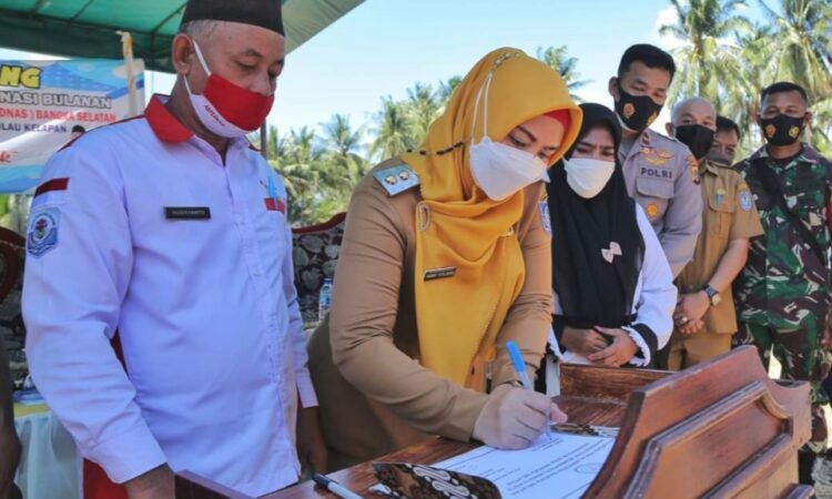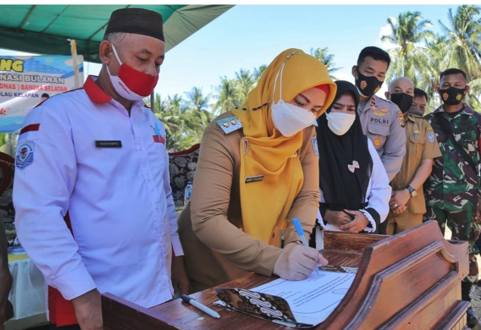 Lepar Pongok – Wakil Bupati Bangka Selatan Debby Vita Dewi,. S.E., menghadiri sekaligus membuka secara langsung Rapat Koordinasi Asosiasi Badan Permusyawaratan Desa Nasional (ABPEDNAS) Kabupaten Bangka Selatan di  Pulau Kelapan Desa Kumbung, Kecamatan Lepar Pongok, Senin (05/07/21).