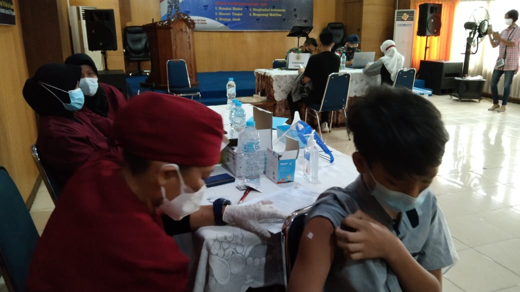 Proses vaksinasi terhadap anak anak tetap melalui prosedur yang telah di tetapkan, diantaranya mulai dari pendaftaran, cek kesehatan seperti tekanan darah, skrening sampai dengan penyuntikan vaksinasi dan massa observasi.
