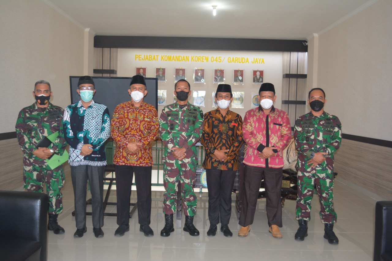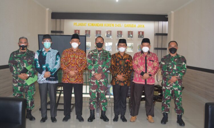 Pangkalpinang – Komandan Korem 045/Garuda Jaya Brigjen TNI M Jangkung Widyanto, S.I.P., M.Tr.(Han) di dampingi Kasi Intelijen Kasrem Kolonel Inf Dikdik Sadikin dan Kasi Teritorial Letkol Inf Arry Sundoro, S.Sos menerima Audensi dari LDII Provinsi Kepulauan Babel Kamis 15/07/2021 di Makorem.