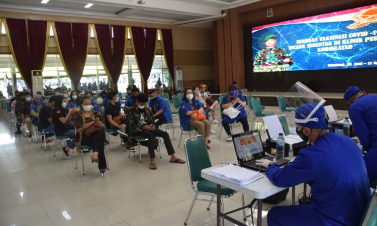 JAKARTA – Pusat Kesenjataan Infanteri (Pussenif) Kodiklatad menggelar vaksinasi massal yang tersebar di wilayah Indonesia. Adapun Program tersebut guna bergerak cepat dalam melaksanakan vaksinasi Covid-19 secara massal bagi warga masyarakat di wilayahnya masing-masing. Kegiatan vaksinasi massal ini dilaksanakan di Graha Yudha Wastu Pramuka Mapussenif Jalan Supratman no 60. Bandung. Kamis (22/7/2021)