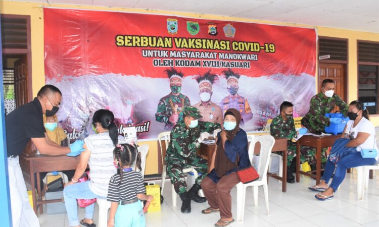Manokwari – Kodam XVIII/Kasuari, melalui Kesehatan Kodam (Kesdam) XVIII/Kasuari terus menerus gencarkan serbuan vaksinasi Covid-19 terhadap masyarakat di Papua Barat.