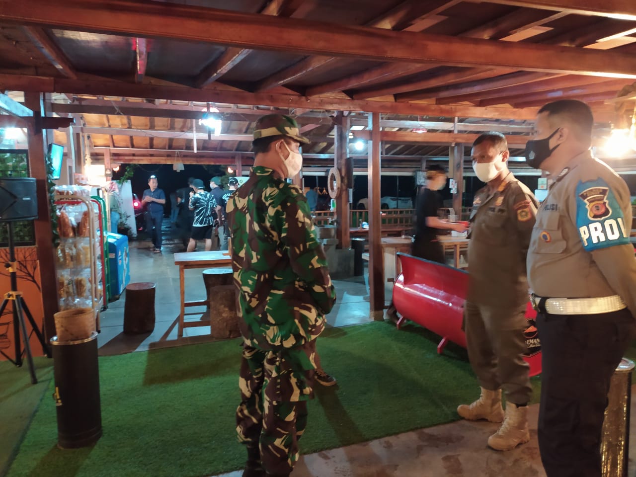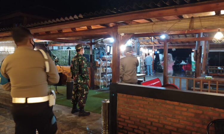 Satuan Tugas Covid-19 gabungan Muspika Sukamakmur, membubarkan kerumunan pengunjung di lokasi Cafe Ki Demang Desa Sukaharja kecamatan Sukamakmur, kabupaten Bogor, di masa penerapan PPKM Level 4.Sabtu 24/07/2021