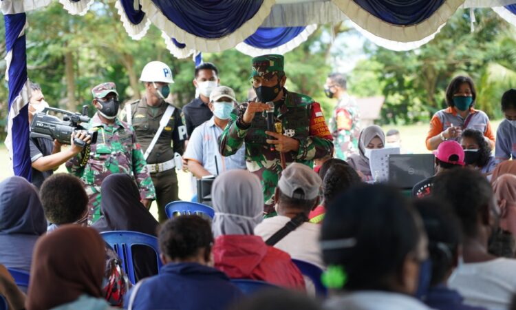 Manokwari – Pangdam XVIII/Kasuari, Mayjen TNI I Nyoman Cantiasa, S.E., M.Tr.(Han)., bersama Asops, Aster dan Kakesdam XVIII/Kasuari tinjau langsung pelaksanaan serbuan vaksinasi yang digelar oleh Kodam XVIII/Kasuari untuk masyarakat Manokwari, di lapangan tembak Kodim 1801/Manokwari, Kamis (29/7/2021).