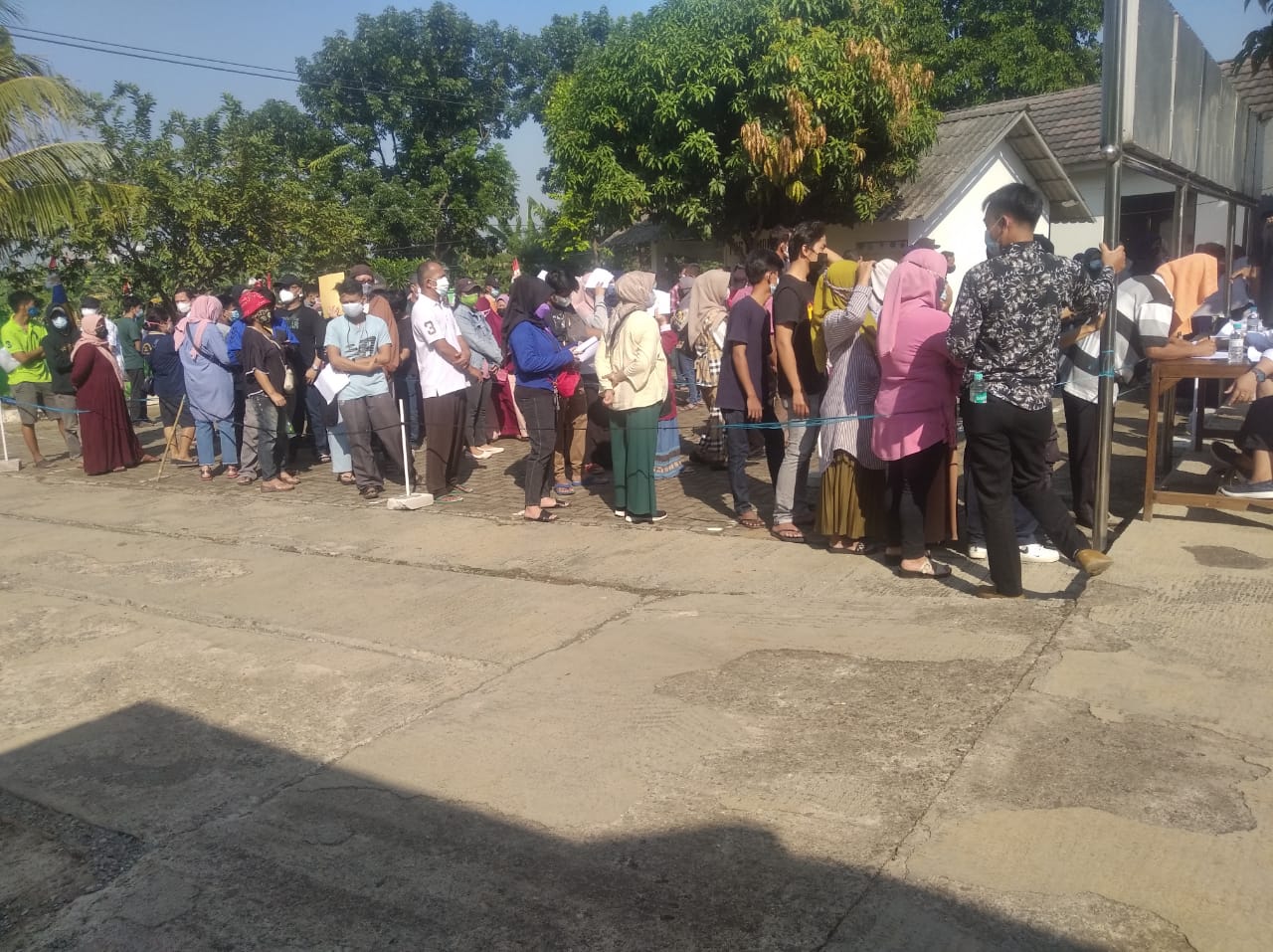 Ratusan warga Cikeas antusias vaksinasi di desa Cikeas udik kecamatan gunung putri kabupaten Bogor.namun sangat disayangkan terjadi kerumunan masa,pasalnya tidak terjadwal dengan baik dan tidak ada petugas yang mengarahkan supaya tidak terjadi kerumuman.(04/08/2021)