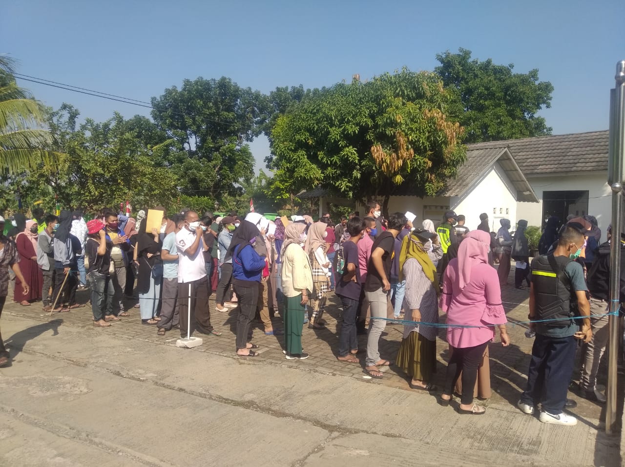 Miftahulfallah selaku kepala desa mejelaskan,”ada dua loket dibarengi karena ada dua jenis vaksin antara sinovak dan astrazeneca.ini bukan kerumunan namun karena dua tahap kuota di jadikan satu pelaksanaannya jadi banyak yang hadir,”ujar dia