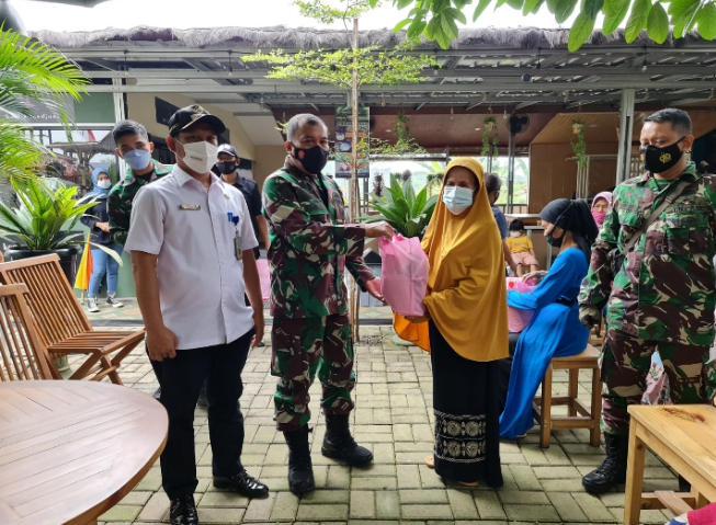Babinsa Koramil 0621-05/Gunung Putri Pantau Moro Gada 32 dan Kades Ciangsana Berbagi Dimasa Pandemi