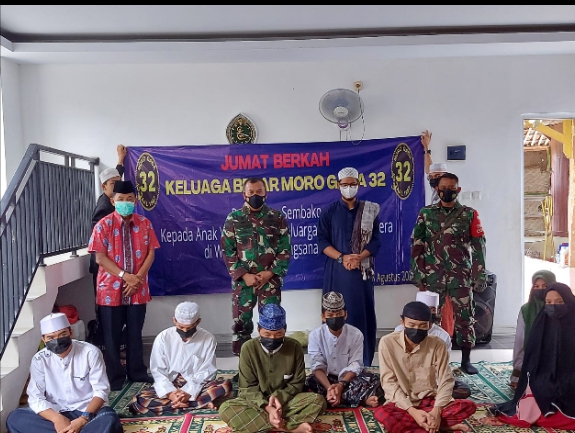 “Bantuan paket sembako yang dibagikan kepada yatim piatu dan dhuafa ini, merupakan tanggungjawab sosial Keluarga Besar Moro Gada 32. Sasaranya sebanyak 200 kilo gram untuk pondok pesantren dan 32 paket sembako untuk warga Desa Ciangsana,” kata Babinsa Kusno kepada awak media usai kegiatan.