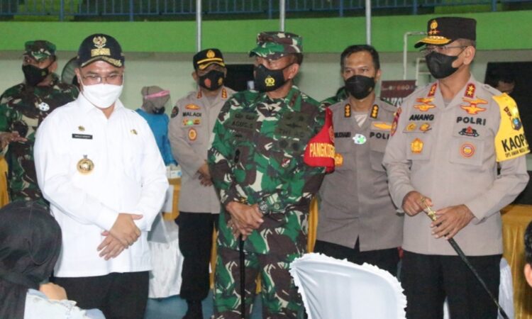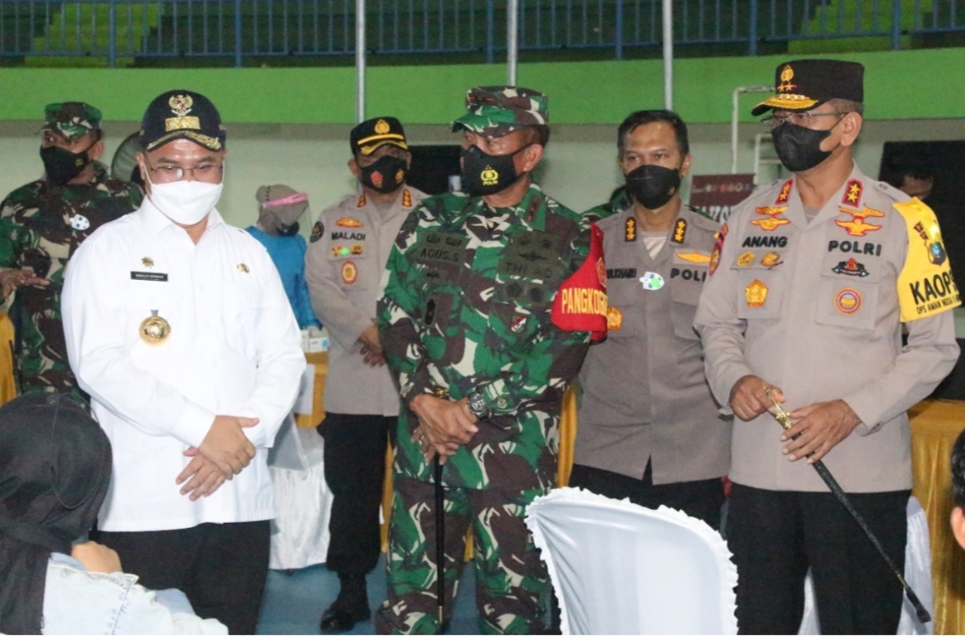 Palembang – Panglima Kodam II/Swj Mayjen TNI Agus Suhardi meninjau dan mengecek langsung penerapan PPKM dan kegiatan Vaksinasi terhadap masyarakat penyandang Disiabilitas yang dilaksanakan di Provinsi Kepulauan Bangka – Belitung (Babel), Sabtu, (14/8/2021).