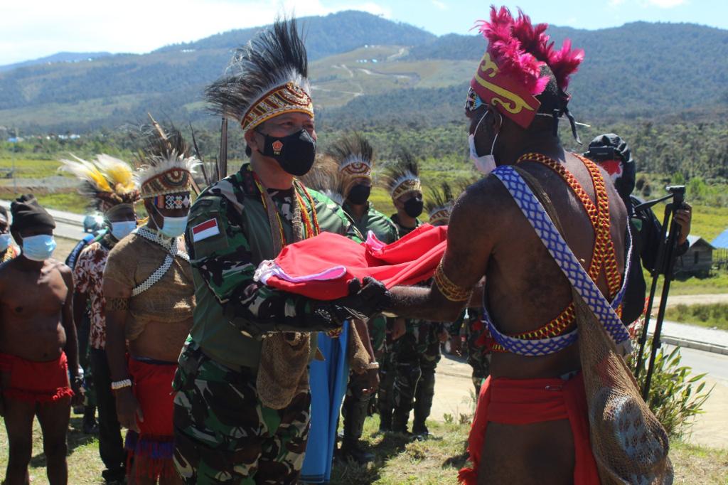Saat penyerahan bendera, Pangdam di sambut oleh tujuh kepala suku yang mewakili suku-suku di Pegaf dan berpesan untuk terus mengibarkan bendera merah putih di Pegaf karena merupakan bagian NKRI.