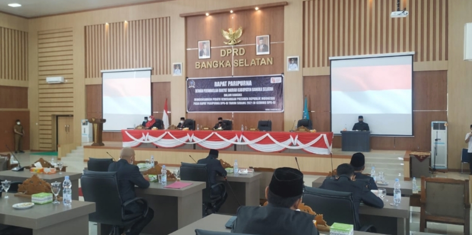 Rapat Paripurna DPRD Kabupaten Bangka Selatan yang dipimpin Ketua DPRD Kabupaten Bangka Selatan (Erwin Asmadi), sekaligus membuka acara Mendengarkan Pidato Kenegaraan Presiden RI secara resmi.