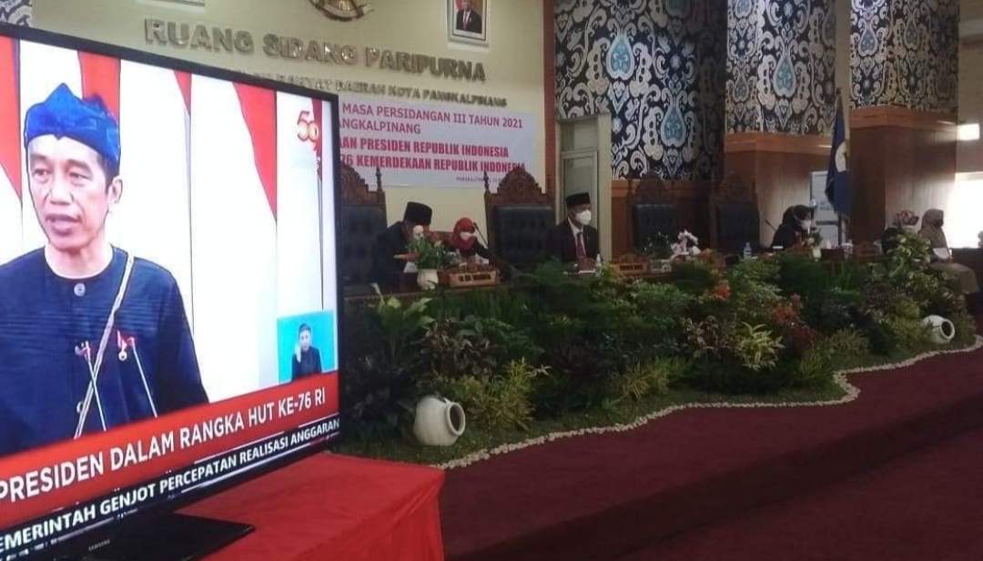 dengan agenda mendengarkan pidato kenegaraan Presiden Republik Indonesia bapak Ir. H. Joko Widodo melalui televisi , Senin (16/8/2021).