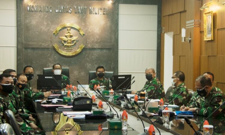 Jakarta – Setelah menyampaikan entry briefing usai menerima amanah jabatan Panglima Kolinlamil (9/8), Laksma TNI Erwin S Aldedharma memimpin Rapat Staf dan Komando (Rasko) yang berlangsung di Mako Kolinlamil, Tanjung Priok, Jakarta Utara, Senin (16/8).