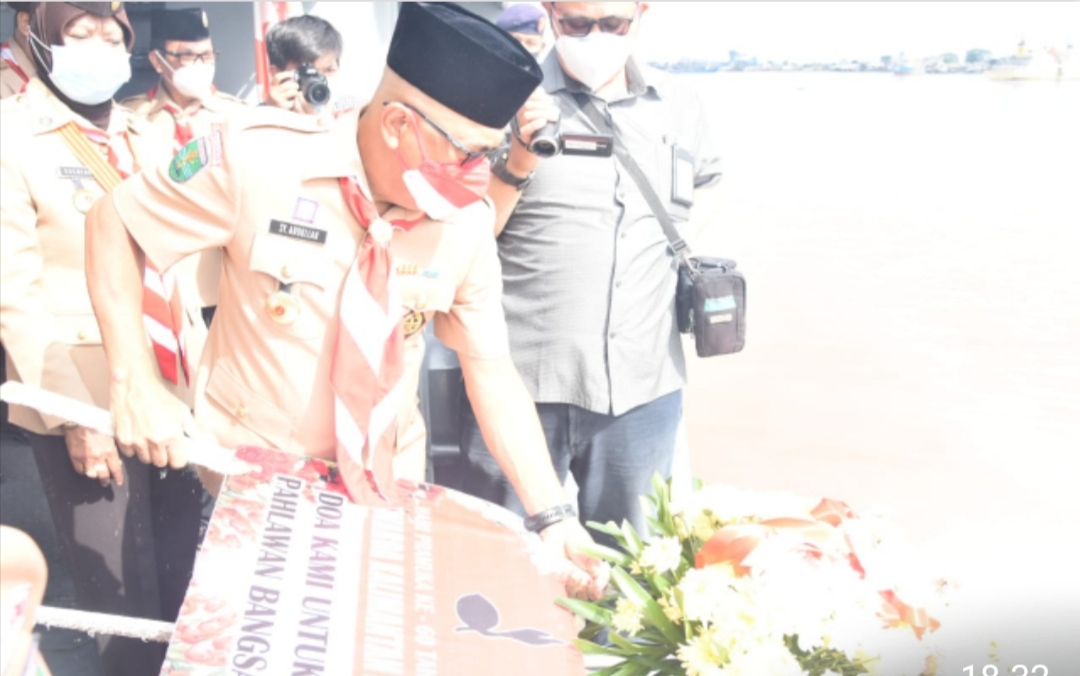 Pontianak – Dalam rangka Hari Pramuka ke-60 Kwartir Daerah Gerakan Pramuka Kalimantan Barat, yang bertemakan “ BERBAHKTI TANPA HENTI “, Senin (16/08/2021) melaksanakan kegiatan Upacara Tabur Bunga di Laut, berangkat dari Dermaga Satuan Kapal Patroli Lantamal XII Pontianak, menggunakan Kapal Angkatan Laut (KAL) Lemukutan – I – 12 – 15.