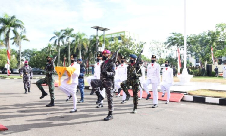 Pontianak – Dalam rangka memperingati detik-detik Proklamasi Kemerdekaan Republik Indonesia, Selasa (17/08/2021), tepat pukul 07.30 WIB bertempat di Kantor DPRD Provinsi Kalimantan Barat, Jl. Jendral Ahmad Yani, Kel. Bangka Belitung Darat, Kec. Pontianak Tenggara, Prov. Kalbar, Pemerintah Prov. Kalimantan Barat menggelar Upacara Peringatan HUT Kemerdekaan Republik Indonesia Ke-76 Tahun 2021 dan bertindak sebagai Inspektur Upacara Gubernur Kalbar Bapak H. Sutarmidji, S.H., M. Hum dan sebagai Komandan Upacara yakni Letkol Laut (PM) Musa. H. Sitorus., S.Si.M.Tr.Opsla, dimana sehari-hari beliau bertugas sebagai Komandan Polisi Militer Angkatan Laut Lantamal XII serta Perwira Upacara oleh Mayor Laut (S) Syaiful Ramadhan , S.T., M.Tr.Opsla.