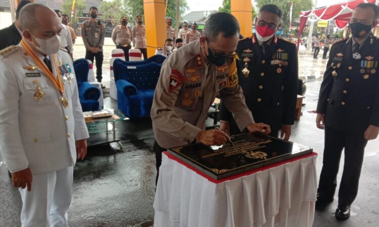 PANGKALPINANG – Kapolda Kep. Bangka Belitung Irjen Pol. Drs. Anang Syarif, menandatangi sekaligus meresmikan gedung baru Sentral Pelayanan Kepolisian Terpadu (SPKT) Polres Pangkalpinang, bertepatan HUT Proklamasi RI ke 76, Selasa (17/08/2021).