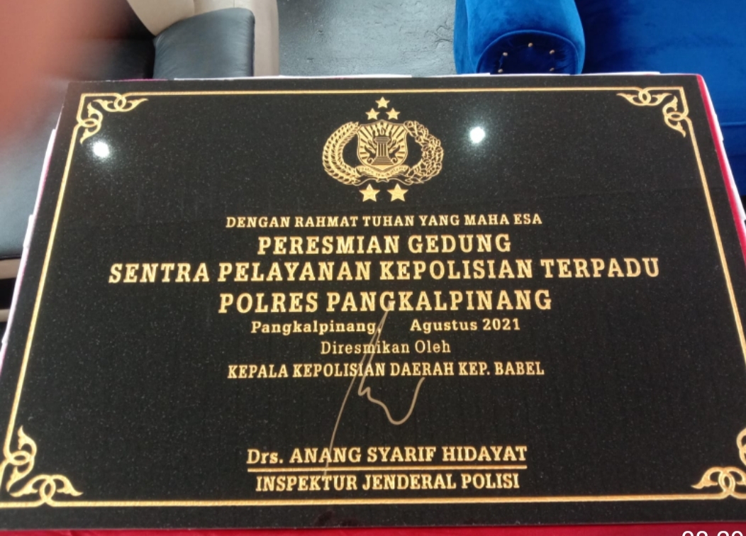Foto : tanda tangan Kapolda Babel peremian gedung SPKT Polres Pangkalpinang. Selasa 17/08/2021 (Baim)