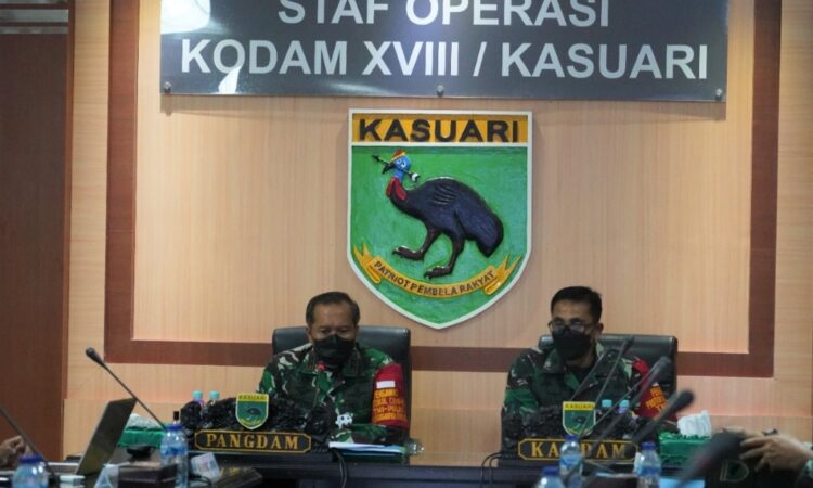 Rapat secara virtual ini diikuti oleh Kasdam XVIII/Kasuari, Brigjen TNI Djoko Andoko dan para Komandan Satuan dijajaran Kodam XVIII/Kasuari.