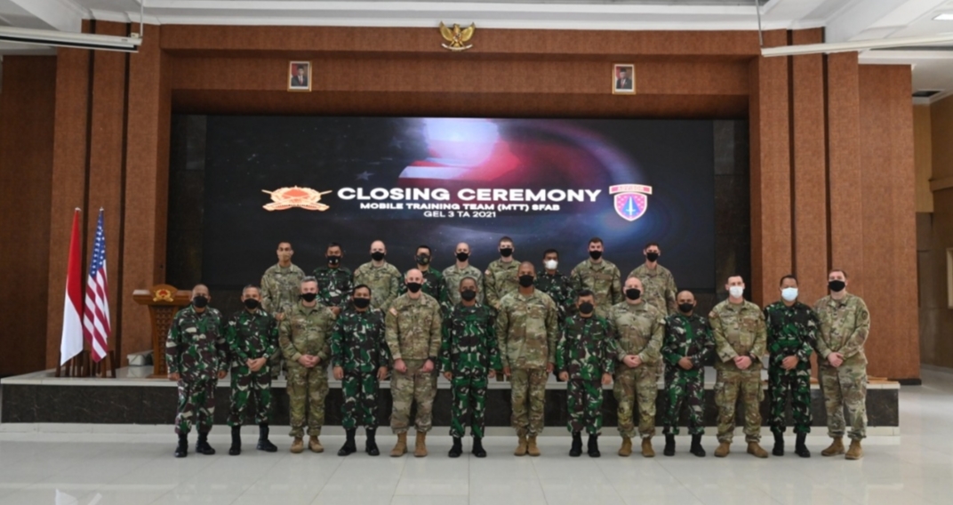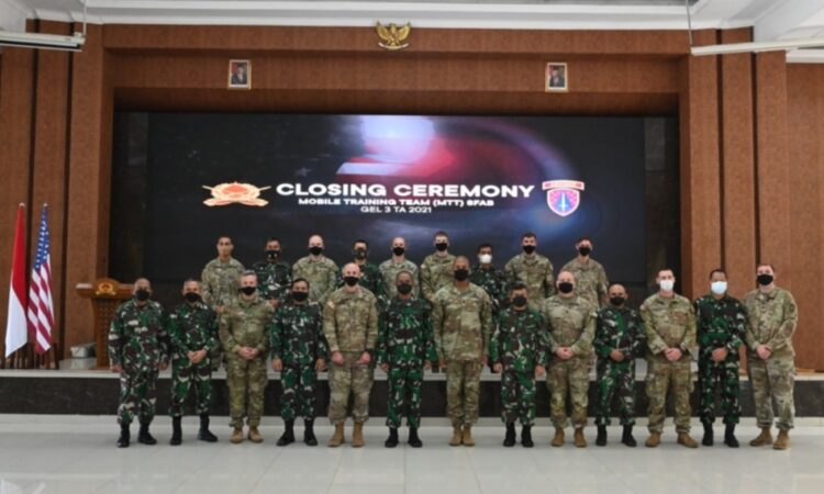 JAKARTA – Latihan Bersama Mobile Training Team Security Force Assistance Brigade (MTT SFAB) tahun 2021 antara TNI AD dan US Army yang berlangsung selama dua minggu (12 s.d. 24 Agustus 2021) secara resmi ditutup oleh Danpussenif Kodiklatad Letjen TNI Arif Rahman, M.A., selaku Inspektur Upacara yang dipusatkan di gedung Yudha Wastu Pramuka Mapussenif, Selasa (24/8/2021).