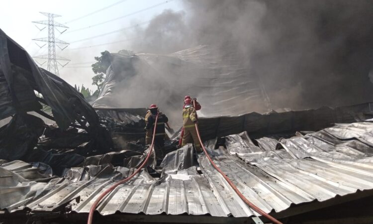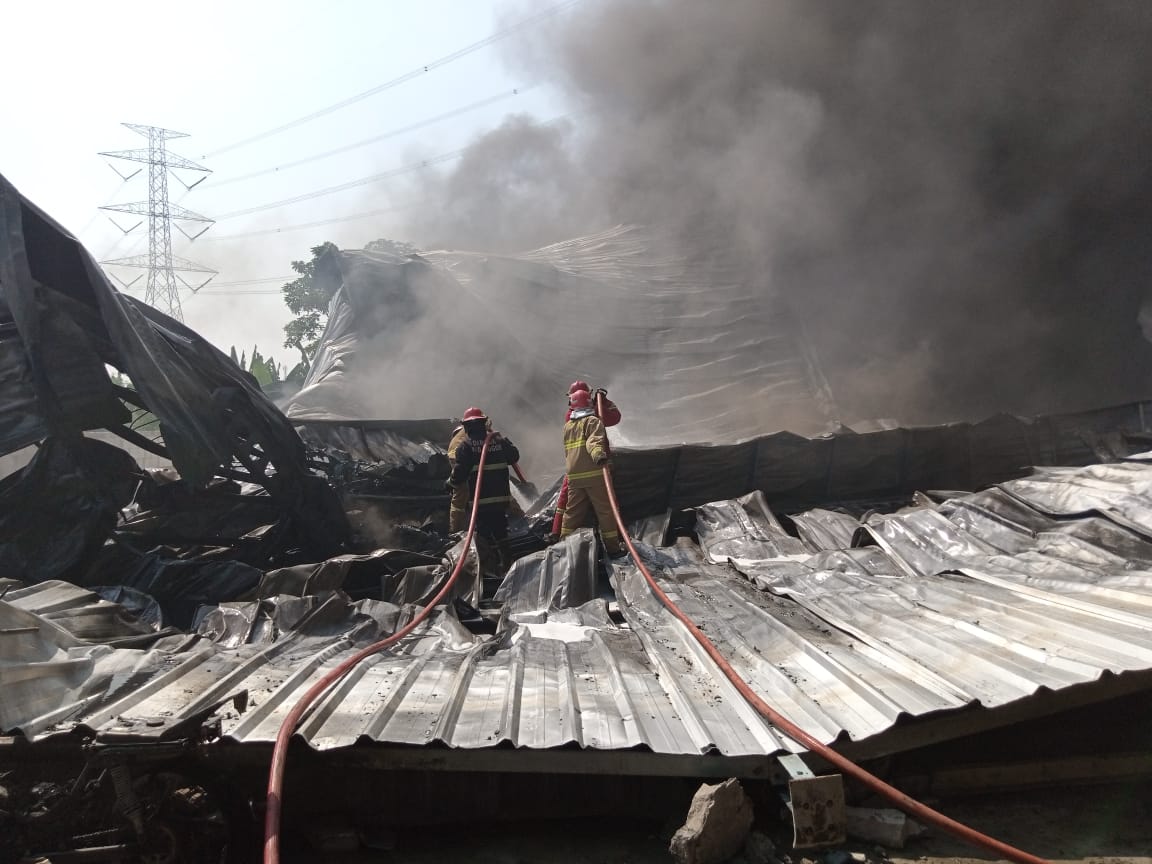 Amukan si jago merah meludeskan bangunan pabrik PT.Foamindo Abadi penghasil Stylefoam di Kampung Pabuaran RT 03 RW 10 Desa Cicadas kecamatan Gunung Putri,Kabupaten Bogor,di Duga Api berasal dari Percikan Api Mesin Las.pada hari ini Kamis 26/08/2021