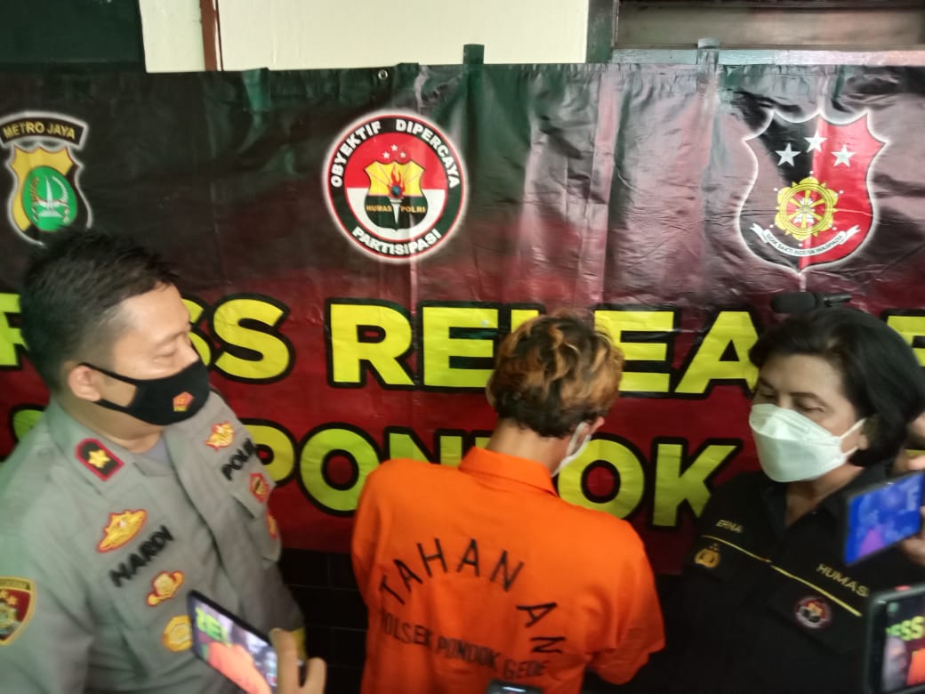 Selanjutnya pelaku berikut barang bukti dibawa ke Polsek Pondok Gede.
