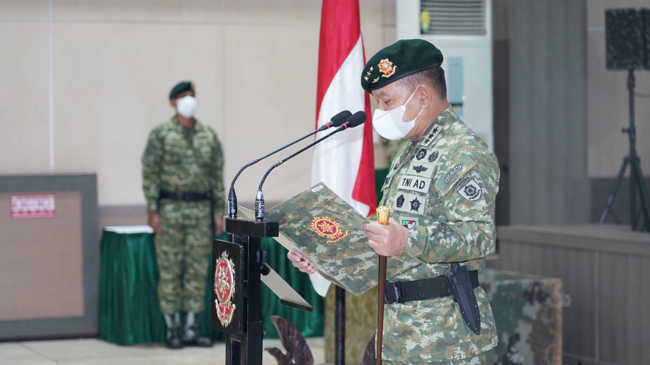 Jakarta – Panglima Kostrad (Pangkostrad), Letjen TNI Dudung Abdurachman, S.E., M.M., memimpin acara Sertijab Kepala Staf Kostrad (Kaskostrad) dan Tradisi Korps prajurit Kostrad bertempat di ruang Mandala Markas Kostrad, Gambir, Jakarta Pusat, Kamis (30/9/2021).