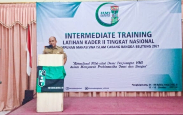 PANGKALPINANG – Wali kota Pangkalpinang, Maulana Aklil hadir sebagai tamu sekaligus membuka kegiatan Latihan Kader II (Intermediate Training) Tingkat Nasional yang digelar Himpunan Mahasiswa Islam (HMI) Cabang Bangka Belitung, di Hotel Jatiwisata Pangkalpinang. Senin (11/10/2021).