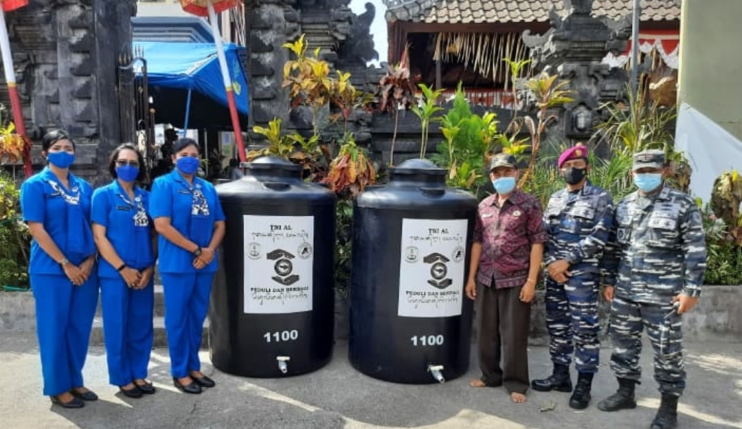 PULIHKAN KONDISI KORBAN BENCANA ALAM JALASENASTRI PANGKALAN TNI AL DENPASAR BERIKAN BANTUAN SEMBAKO DAN ALAT PENAMPUNG AIR BERSIH