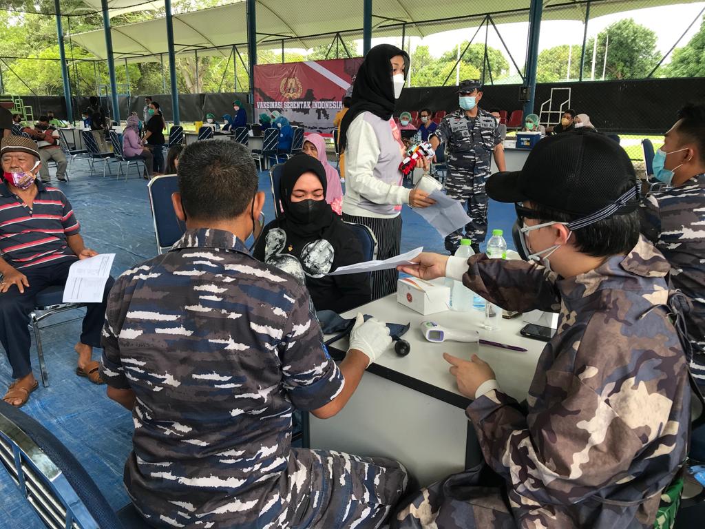 JAKARTA – Jajaran Pangkalan Utama TNI AL III Jakarta yaitu Lanal Cirebon terus tambah vaksin covid-19 kepada 269 kepada masyarakat umum dalam rangka mensukseskan program Vaksinasi Nasional di wilayah Kota Cirebonyang dilaksanakan Lap. Tenis, Asset 3 Pertamina Klayan, Cirebon, Sabtu(27/11/2021).