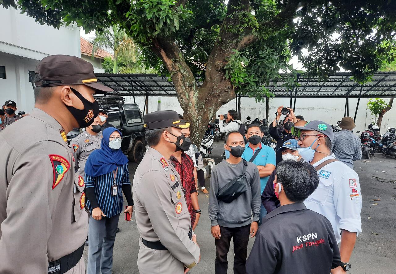 “Hari ini para buruh dari serikat buruh, melakukan aksinya dalam menyampaikan aspirasi mereka, terkait kenaikan UMK di kabupaten Semarang,” jelas AKBP Yovan Fatikha.