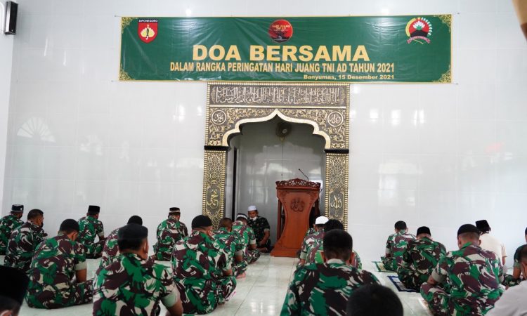 Banyumas – Prajurit dan PNS Makorem 071/Wijayakusuma serta Balak Aju Kodam IV/Diponegoro jajaran Korem 071/Wijayakusuma yang berada dalam satu lingkungan dengan Makorem 071/Wijayakusuma, melakukan kegiatan melantunkan ayat ayat Alloh dan Doa bersama di masjid Wijayakusuma dalam rangk hari Juang TNI AD ke-76, Rabu (15/12/2021).