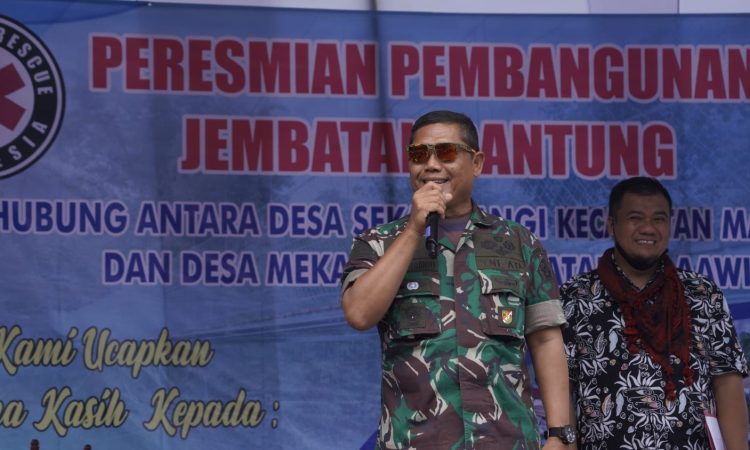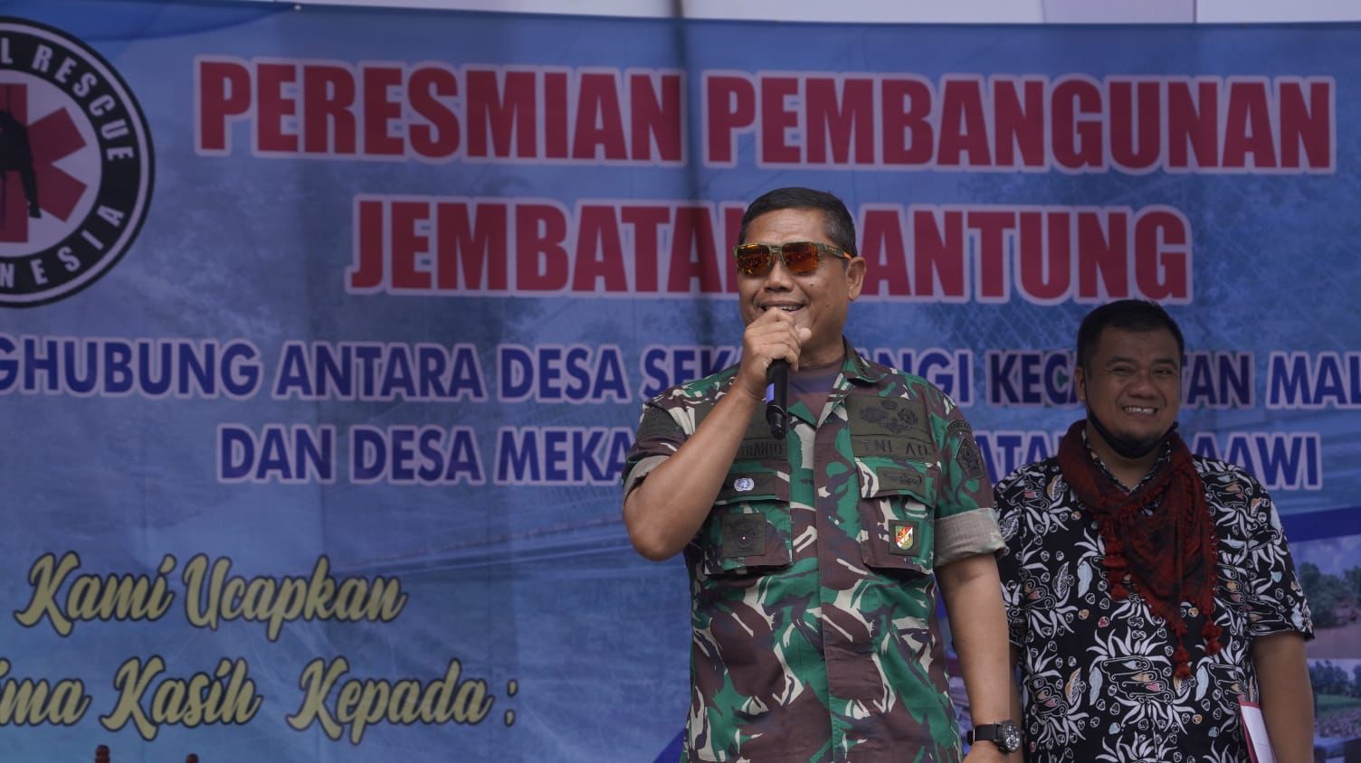 Dalam sambutannya Dankodiklatad mengucapkan terimakasih kepada seluruh pihak baik komunitas, warga masyarakat dan para donatur yang mewujudkan berdirinya jembatan gantung ini. Jembatan yang menghubungkan dua desa dari dua kecamatan ini terhitung memperpendek jarak tempuh yang harus dicapai warga dari 32 Km menjadi hanya 4 Km. Maka dari itu diharapkan keberadaannya dapat meningkatkan roda perekonomian dua desa dan menghidupkan UMKM setempat yang muaranya adalah kesejahteraan masyarakat.