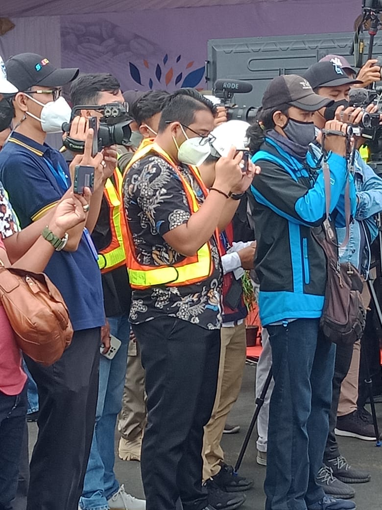 Para awak media saat peliputan acara Pelepasan ekspor komoditas ini dipelabuhan Tanjung Priok JICT.