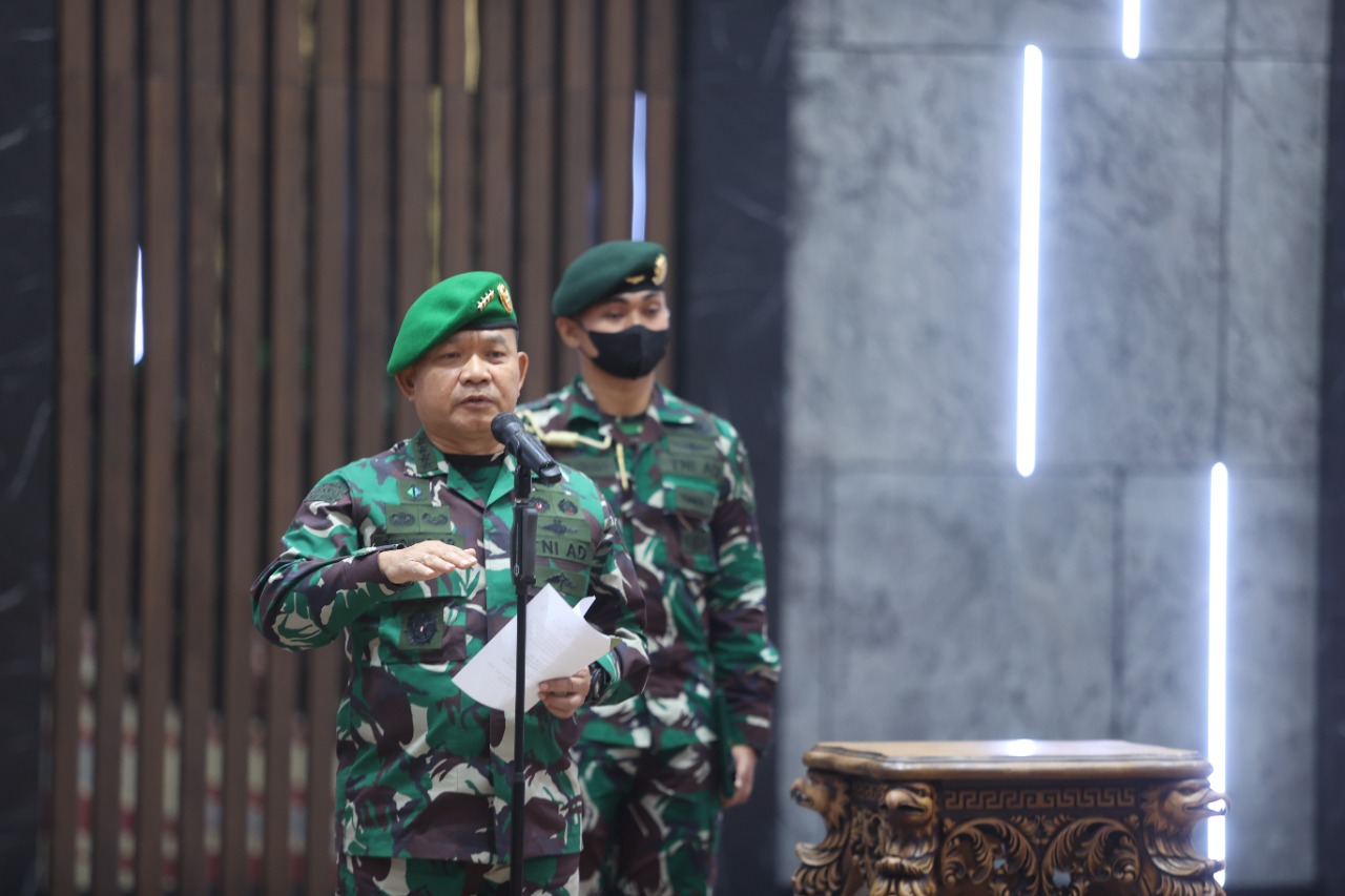 Hal tersebut disampaikan Kepala Staf Angkatan Darat (Kasad) Jenderal TNI Dudung Abdurachman, S.E., M.M., saat memimpin serah terima jabatan (Sertijab) Pangdam Jaya/Jayakarta dari Mayjen TNI Mulyo Aji, M.A., kepada Mayjen TNI Untung Budiarto, bertempat di Mabesad, Jakarta, Senin (10/1/2022).