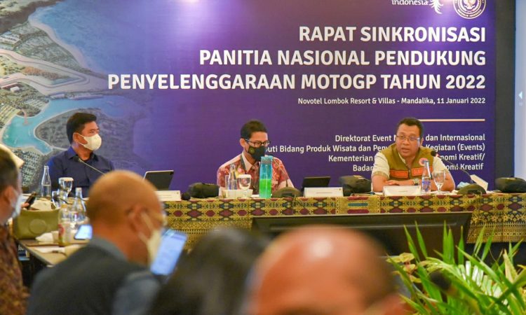 Lintas NTB, Lombok Tengah – Untuk memaksimalkan persiapan event internasional MotoGP, panitia nasional menggelar rapat sinkronisasi untuk menggesa kesiapan sarana dan prasarana serta berbagai fasilitas penunjang ajang MotoGP Sirkuit Mandalika, Selasa (11/1/2021) di Hotel Novotel Mandalika Lombok Tengah, NTB.