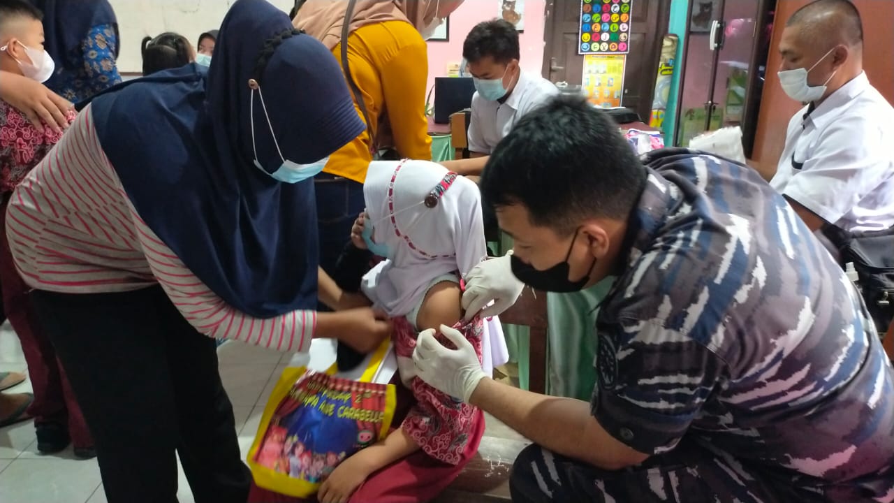 Servak Maritim Lanal Babel Berhasil Suntik 430 Anak SD Belinyu
