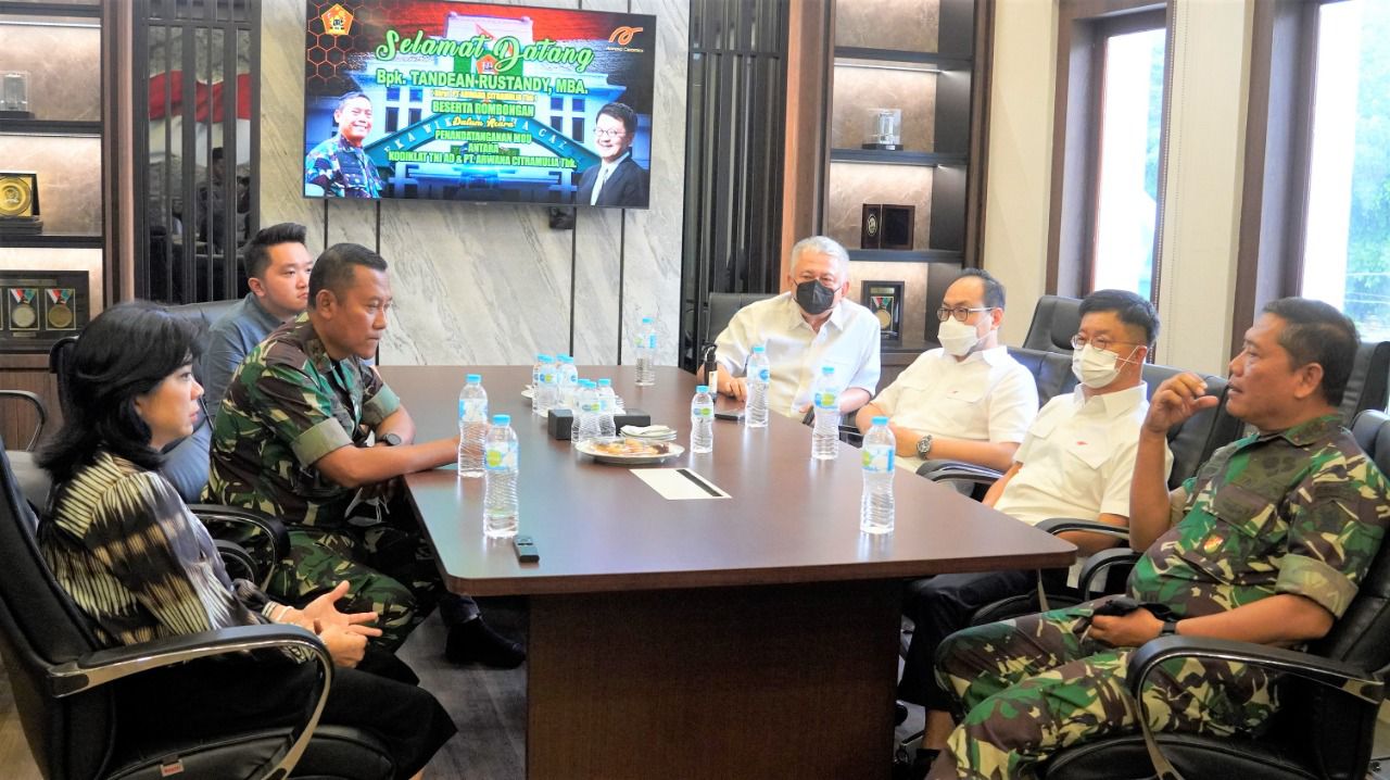 Bandung – Tingginya intensitas kegiatan Kodiklatad yang bersentuhan langsung dengan masyarakat terutama sejak kepemimpinan Letjen TNI AM. Putranto, S.Sos. menarik perhatian beberapa perusahaan swasta untuk melaksanakan kerja sama dalam bentuk hibah. Dankodiklatad menerima kunjungan Dirut PT Arwana Citra Mulia Tbk, Bapak Tandean Rustandy, M.B.A. dalam rangka penandatangangan Memorandum of Understanding / Berita Acara Hibah Keramik di Lounge Room Makodiklatad. Selasa (18/1/2022)