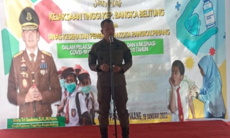PANGKALPINANG – Sosialisasi dan Vaksinasi Covid-19 untuk anak usia 6 sampai dengan 11 tahun yang diadakan oleh kejaksaan Tingi Bangka Belitung bekerjasama dengan Dinkes kota pangkalpinang, acara berlangsung di Sekolah Dasar Negeri 60 Kota Pangkalpinang, Rabu (19/01/2022).