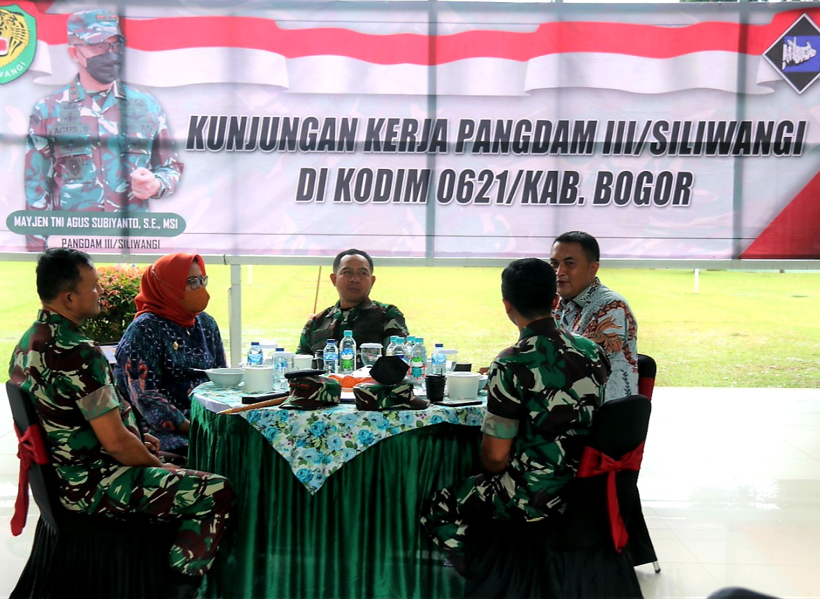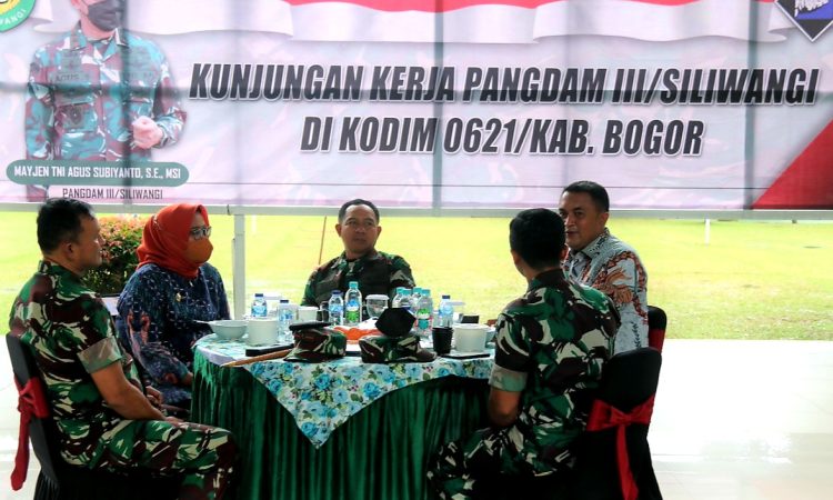 Bogor,- Pangdam III/Slw Mayjen TNI Agus Subiyanto, S.E., M.Si, melakukan Silaturahmi bersama Forkopimda Kabupaten Bogor, bertempat di Halaman Belakang Kodim 0621/Kabupaten Bogor, Jalan Tegar Beriman, Kelurahan Tengah, Kecamatan Cibinong, Kabupaten Bogor, Jawa Barat, Selasa (18/1/2022).