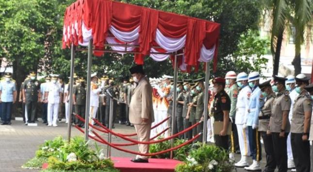 Hadir dalam Upacara yang bertindak sebagai Irup Letjen (purn) H. Prabowo Subianto (Menhan RI), dilanjutkan dengan tabur bunga ke 48 Pahlawan dan diikutin oleh para pejabat Kemhan.