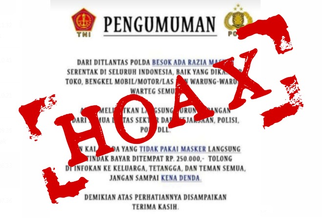 “Hoax, informasi tersebut jelas-jelas tidak benar. Informasi seperti ini sudah berulang kali menyebar.”tegas Kombes Pol Maladi.