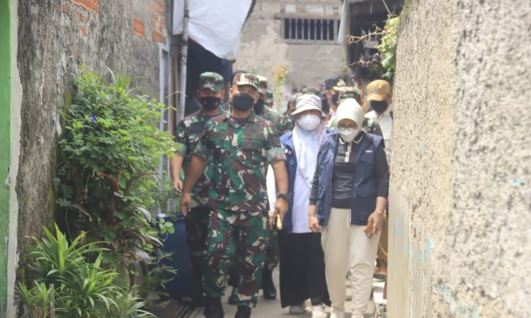 Kota Bekasi – Selasa, 15 Februari 2022,Sekretaris Daerah Kota Bekasi Reny Hendrawati bersama Komandan Kodim 0507/Bekasi Kolonel Arm Iwan Aprianto dampingi Pangdam Jayakarta Mayjend TNI Untung Budiharto dalam peninjauan langsung vaksinasi lansia di Kampung Rawa Bambu RT 004 RW 001 Kelurahan Kalibaru, Kecamatan Medan Satria, Kota Bekasi, Selasa (15/2).