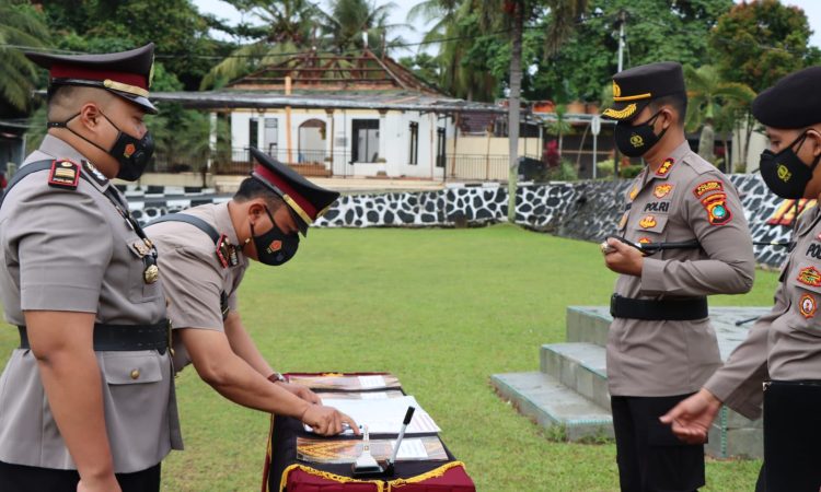 SUNGAILIAT – Surat Keputusan Kapolda Kep.Babel, pengangkatan dan pengambilan sumpah pejabat baru dan penandatanganan berita acara serah terima jabatan (Sertijab), sumpah janji dan pakta integritas, dipimpin langsung Kapolres Bangka AKBP Indra Kurniawan, SH., S.Ik., M.Si., berlangsung di halaman Mako Polres Bangka. Kamis (17/02/2022).